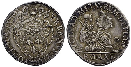 ROMA - Urbano VIII (1623-1644) - Testone - A. VIII - Stemma sormontato da tiara e chiavi decussate - R/ Roma seduta a d. - (AG g. 9,56) R CNI 349; Munt. 45