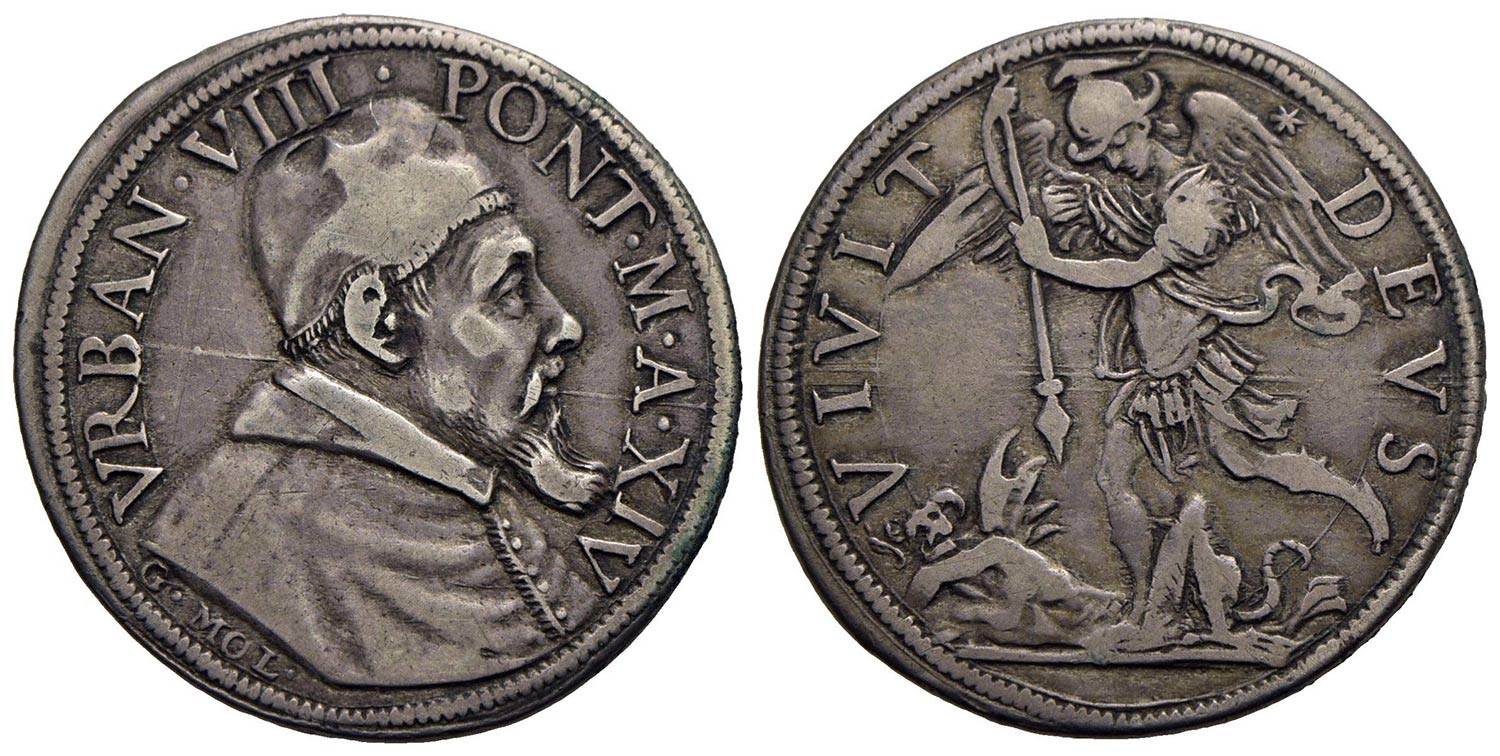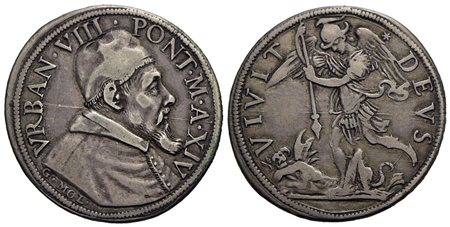 ROMA - Urbano VIII (1623-1644) - Testone - A. XIV - Busto a d. - R/ San Michele trafigge Lucifero - (AG g. 9,29) RR CNI 471; Munt. 81