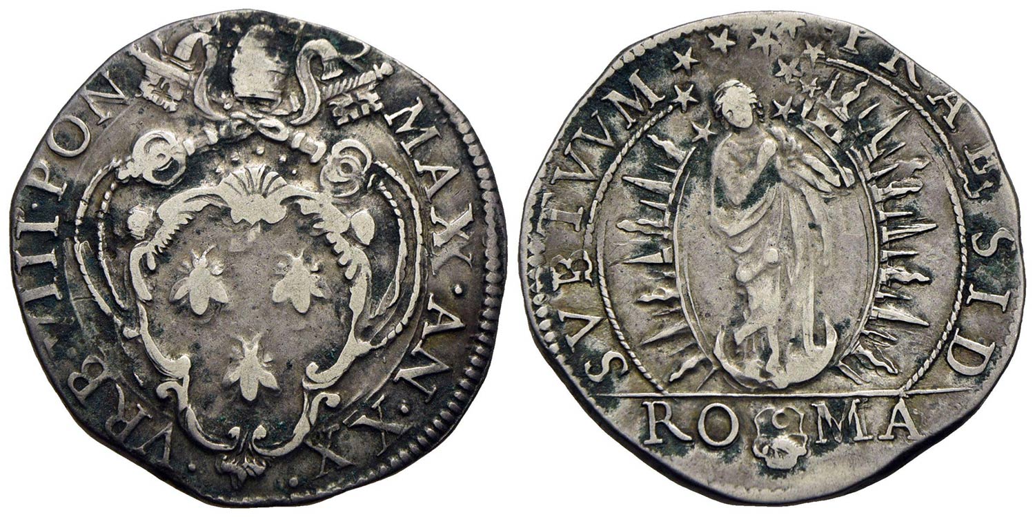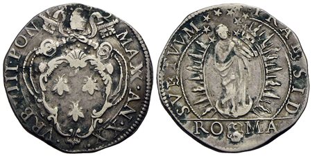 ROMA - Urbano VIII (1623-1644) - Testone - A. XX - Stemma - R/ L'Immacolata entro elisse radiante -