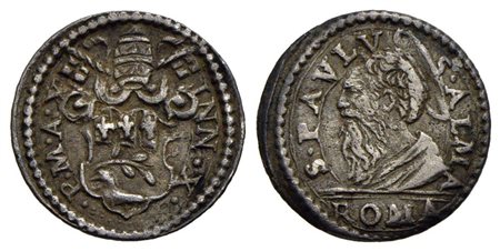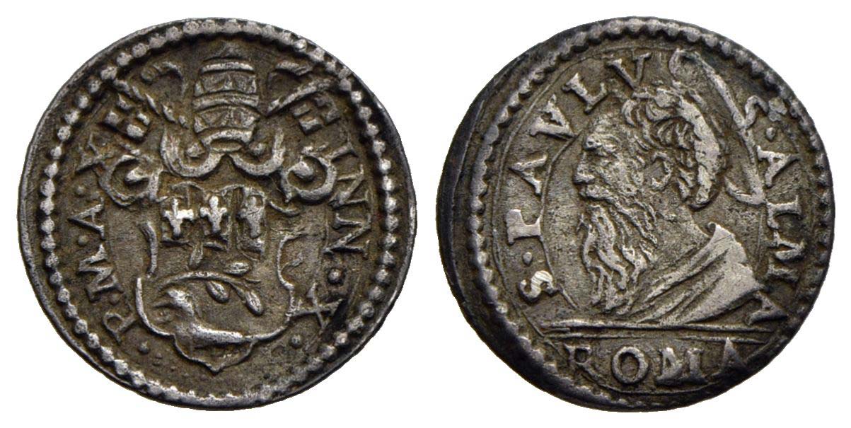 ROMA - Innocenzo X (1644-1655) - Mezzo grosso - Stemma a targa - R/ Busto di San Paolo a s. - (AG g. 0,79) R CNI 157; Munt. 62