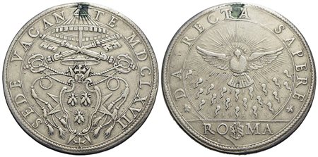 ROMA - Sede Vacante (1667) - Piastra - 1667 - Stemma trilobato - R/ Colomba radiante - (AG g. 31,62) R CNI 2; Munt. 3 Foro otturato