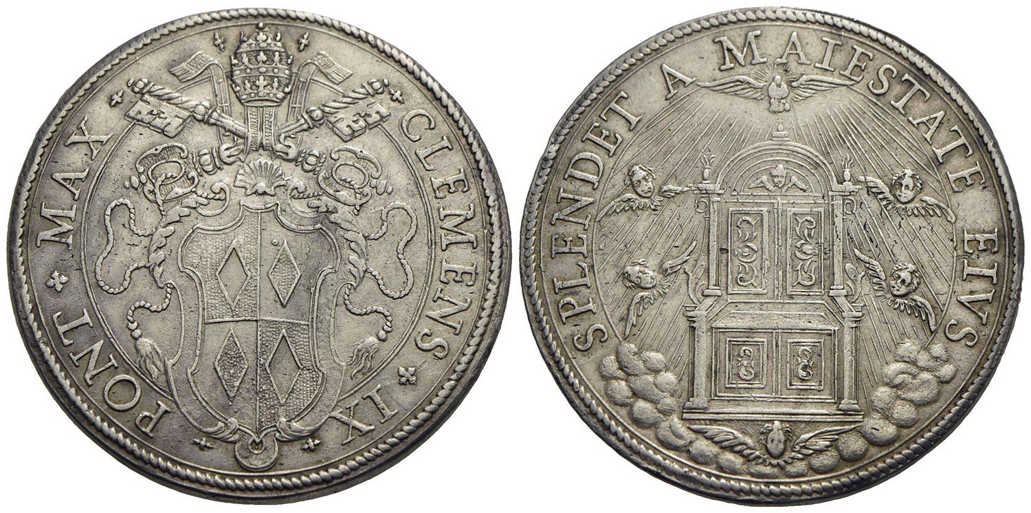 ROMA - Clemente IX (1667-1669) - Piastra - Stemma ovale sagomato - R/ La cattedra di San Pietro - (AG g. 32) RR CNI 15; Munt. 4