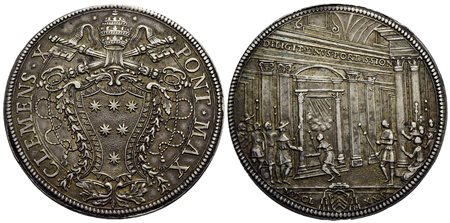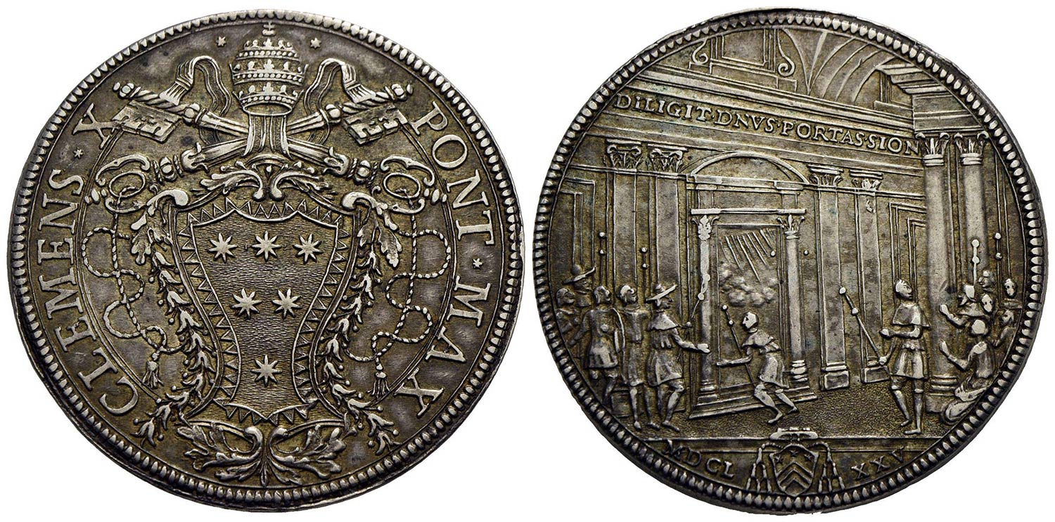 ROMA - Clemente X (1670-1676) - Piastra - 1675 - Stemma poligonale fra due festoni di alloro - R/ Portico di San Pietro con pellegrini - (AG g. 32,07) R CNI 22; Munt. 18 Patinata