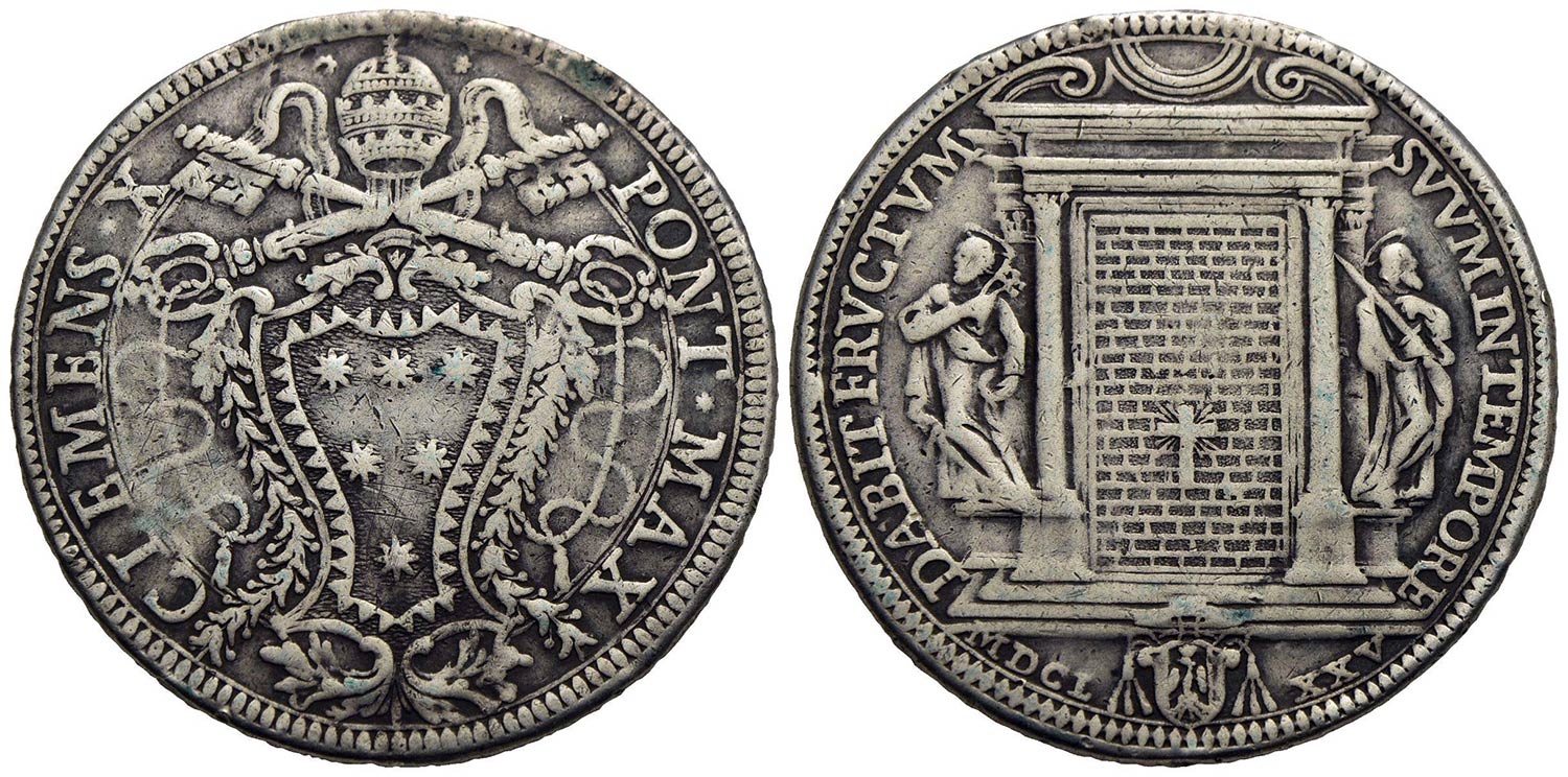 ROMA - Clemente X (1670-1676) - Piastra - 1675 - Stemma poligonale fra due festoni di alloro - R/ La