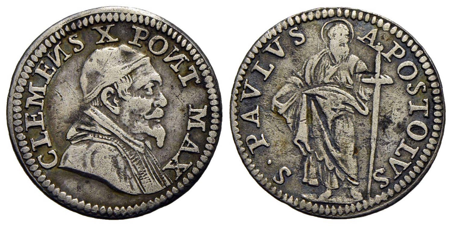 ROMA - Clemente X (1670-1676) - Grosso - Busto a d. - R/ San Paolo - (AG g. 1,47) R CNI 53; Munt. 43