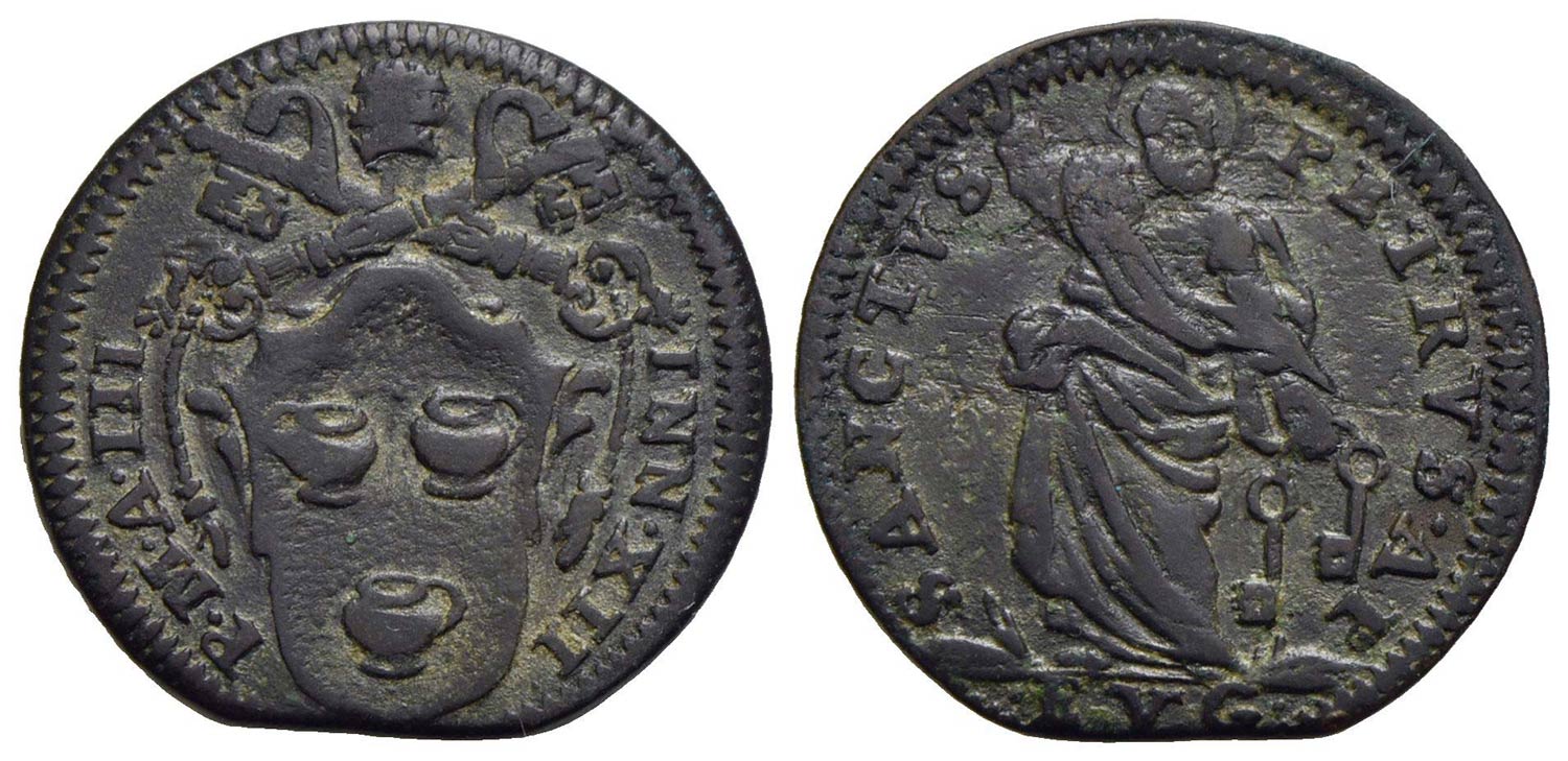 GUBBIO - Innocenzo XII (1691-1700) - Quattrino - A. III - Stemma a targa semiovale - R/ San Pietro - (CU g. 3,31) CNI 12; Munt. 191