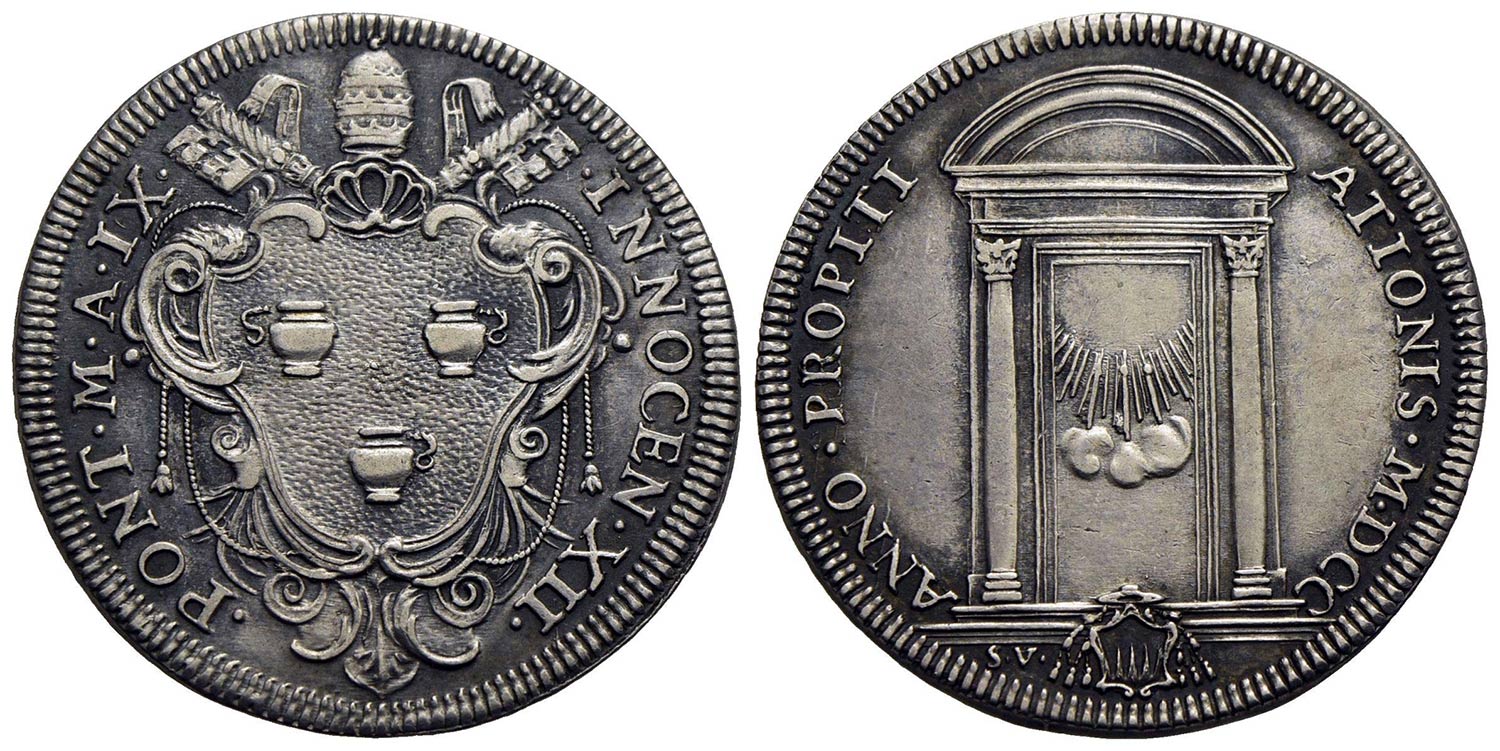 ROMA - Innocenzo XII (1691-1700) - Testone - A. IX - Stemma a cuore sagomato in cornice - R/ Porta Santa - (AG g. 9,16) R CNI 140; Munt. 37 Ex Asta Ratto 1962