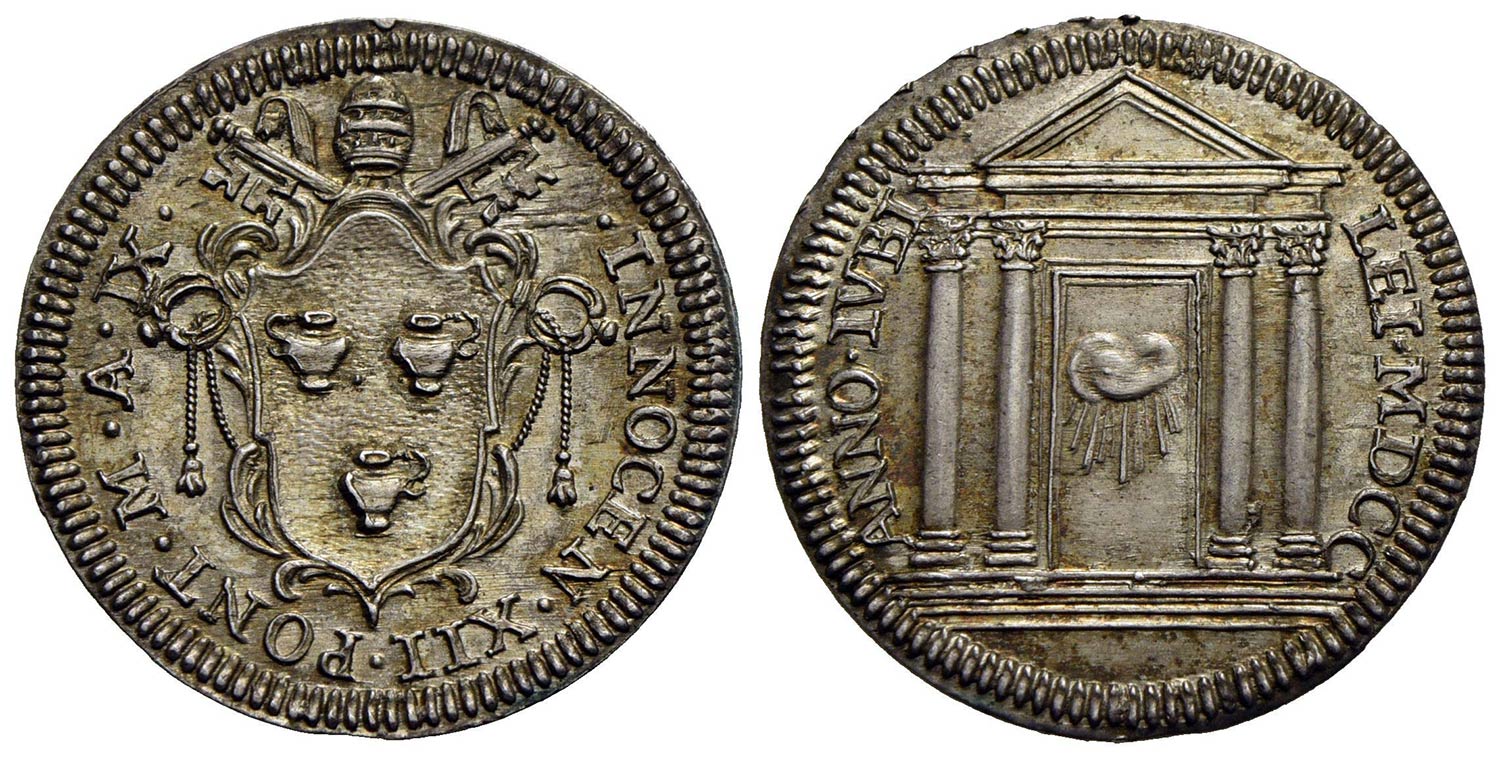 ROMA - Innocenzo XII (1691-1700) - Giulio - 1700 A. IX - Stemma a targa con fogliami - R/ Porta santa a quattro colonne - (AG g. 3,12) R CNI 141; Munt. 52