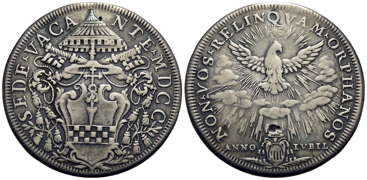 ROMA - Sede Vacante (1700) - Piastra - 1700 - Stemma a targa poligonale - R/ Colomba radiante - (AG g. 30,73) R CNI 4; Munt. 3 Foro otturato
