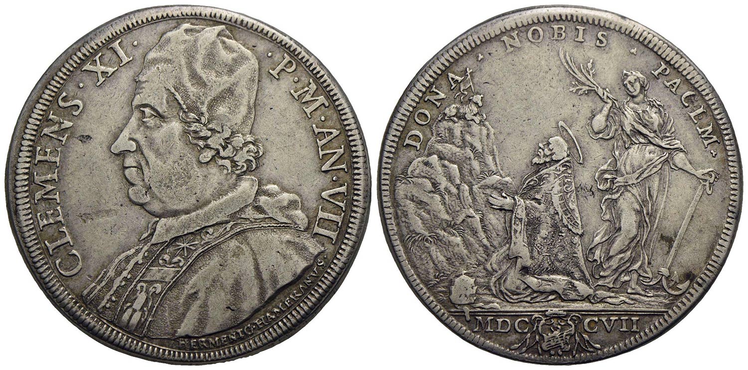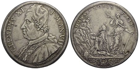 ROMA - Clemente XI (1700-1721) - Piastra - 1707 A. VII - Busto a s. con camauro - R/ San Clemente inginocchiato a s. - (AG g. 31,98) RR CNI 85; Munt. 35