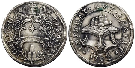 ROMA - Clemente XI (1700-1721) - Testone - 1702 A. II - Stemma sormontato da tiara e chiavi decussat