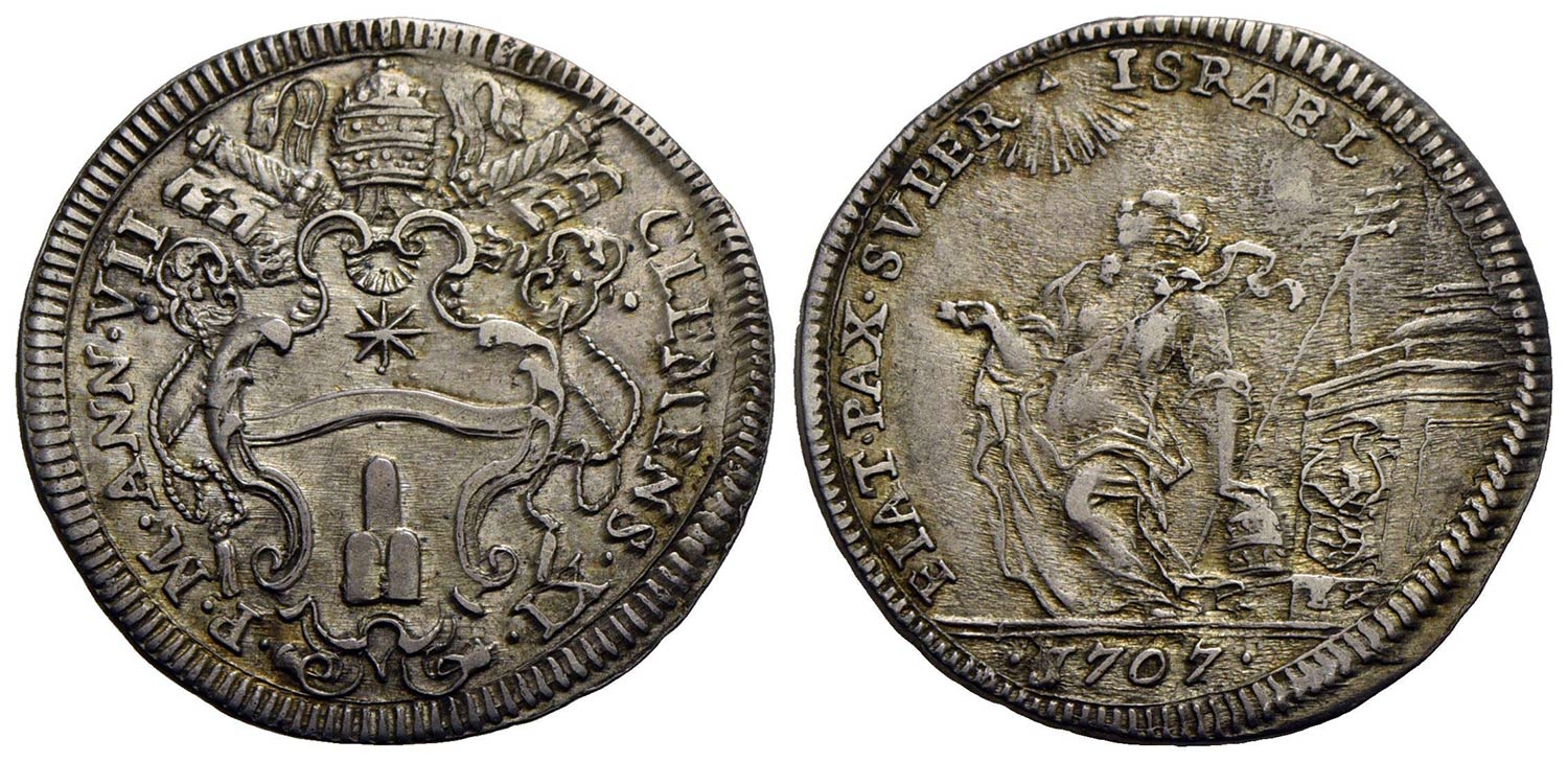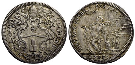 ROMA - Clemente XI (1700-1721) - Giulio - 1707 A.VII - Stemma sagomato con fogliami - R/ La Chiesa i