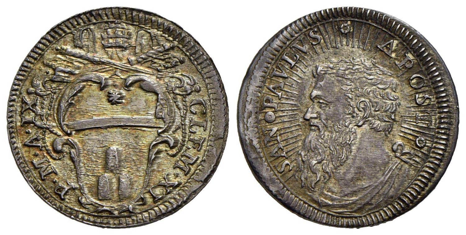 ROMA - Clemente XI (1700-1721) - Grosso - A. IX - Stemma trilobato con fogliami - R/ Busto di San Paolo a s. - (AG g. 1,66) RR CNI 138; Munt. 151