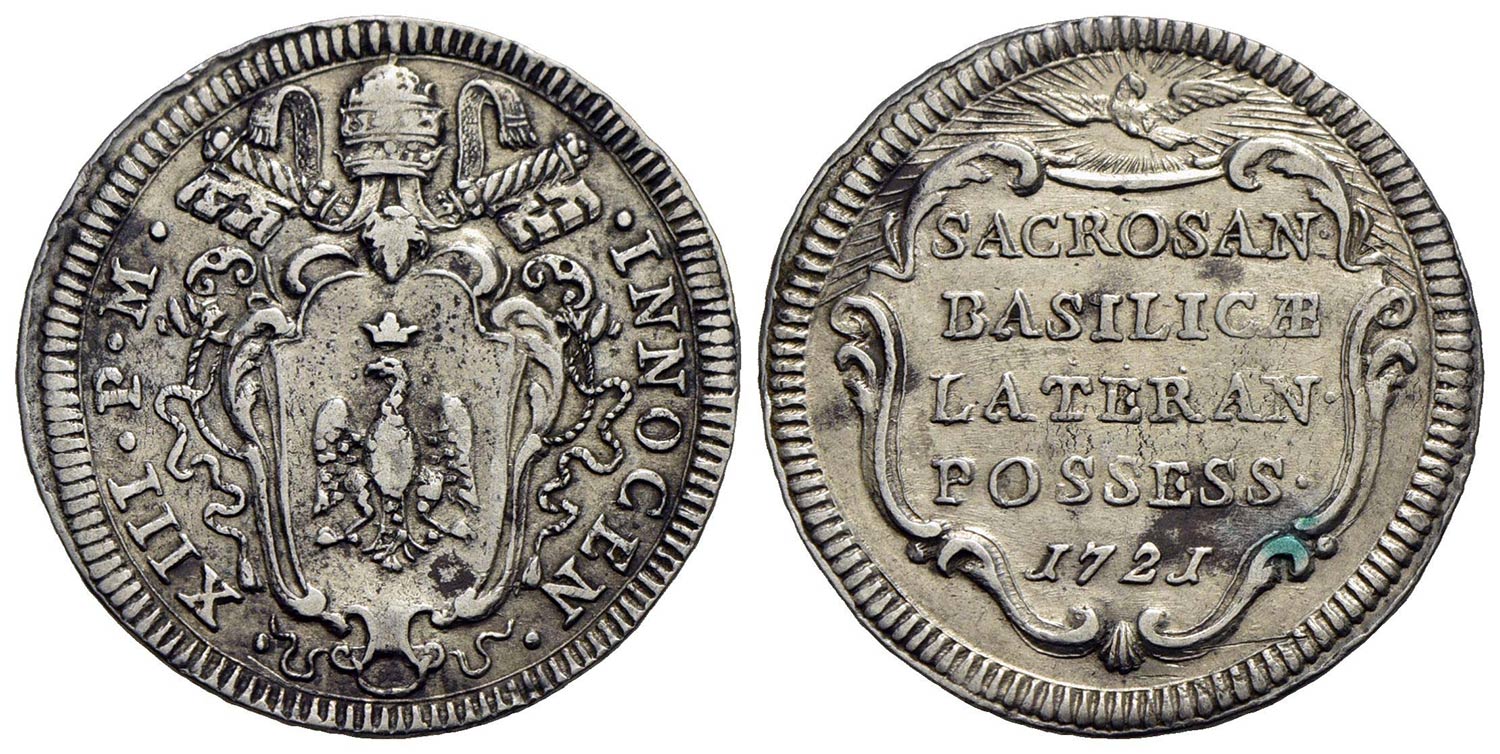 Lotto 581 | ROMA - Innocenzo XIII (1721-1724) - Giulio - 1721 - Stemma a targa in cornice - R/ Scritta in cartel