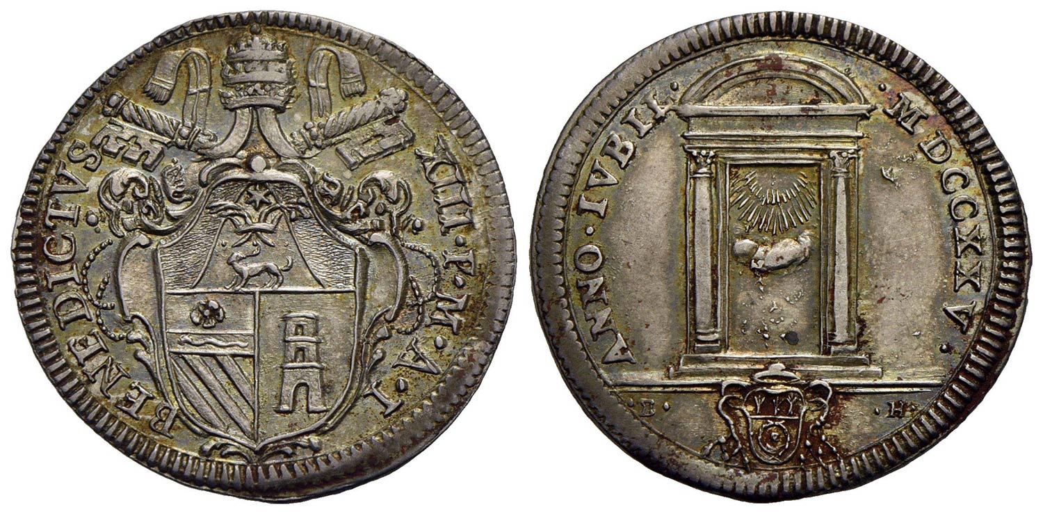 ROMA - Benedetto XIII (1724-1730) - Giulio - 1725 A. I - Stemma a targa - R/ La Porta santa - (AG g. 3,07) R CNI 10; Munt. 6 Delicata patina iridescente