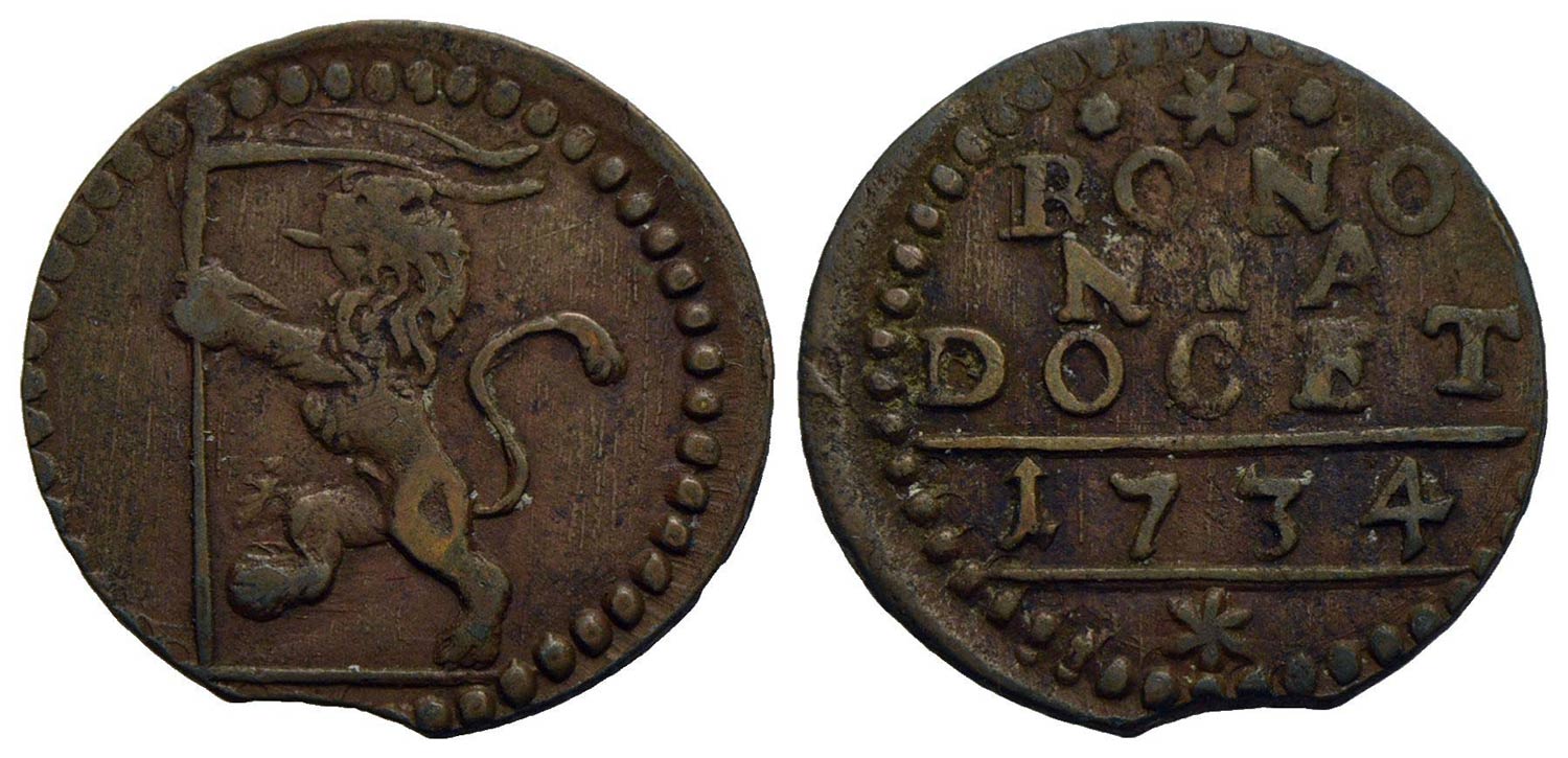 BOLOGNA - Clemente XII (1730-1740) - Quattrino - 1734 - Leone rampante a s. - R/ Scritta - (CU g. 2,61) R CNI 70; Munt. 195c