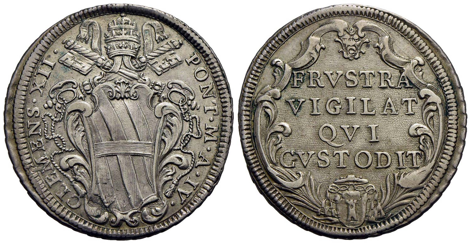 ROMA - Clemente XII (1730-1740) - Mezza piastra - A. IV - Stemma sormontato da tiara e chiavi decuss