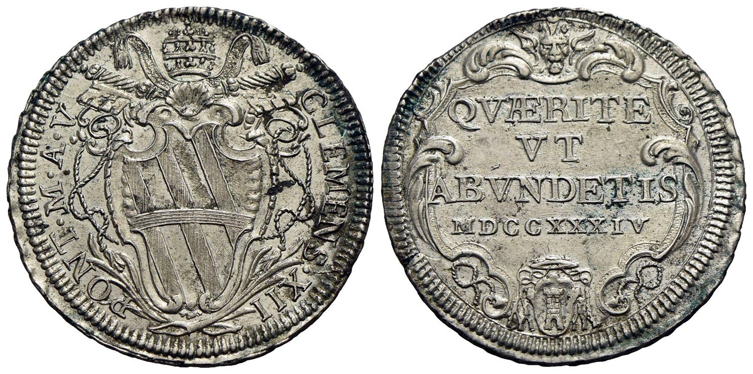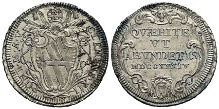 ROMA - Clemente XII (1730-1740) - Testone - 1734 A. V - Stemma trilobato - R/ Scritta in cartella -
