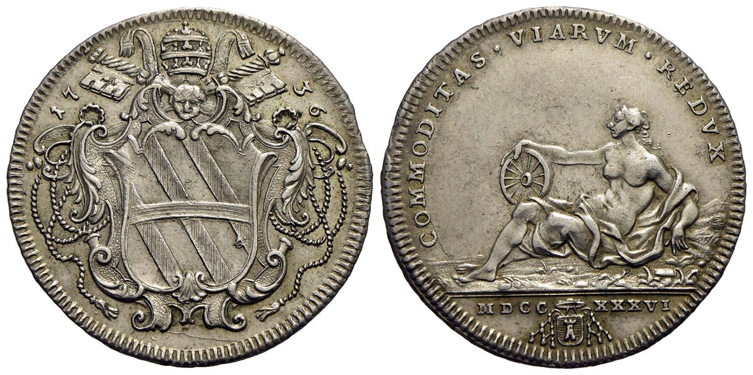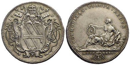 ROMA - Clemente XII (1730-1740) - Testone - 1736 - Stemma sormontato da tiara e chiavi decussate - R/ La Fortuna seduta a s. - (AG g. 8,39) CNI 105; Munt. 24