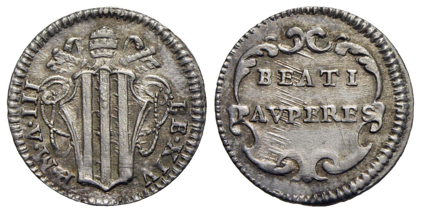 ROMA - Benedetto XIV (1740-1758) - Mezzo grosso - A. III - Stemma poligonale - R/ Scritta in cartella - (AG g. 0,68) CNI 109; Munt. 143 Segnetti al R/