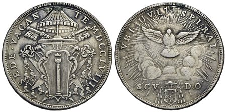 ROMA - Sede Vacante (1758) - Scudo - 1758 - Stemma poligonale con fogliami - R/ Colomba radiante - (