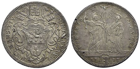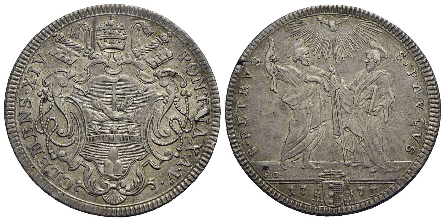ROMA - Clemente XIV (1769-1774) - Testone - 1773 A. V - Stemma a targa sagomata - R/ San Paolo e San