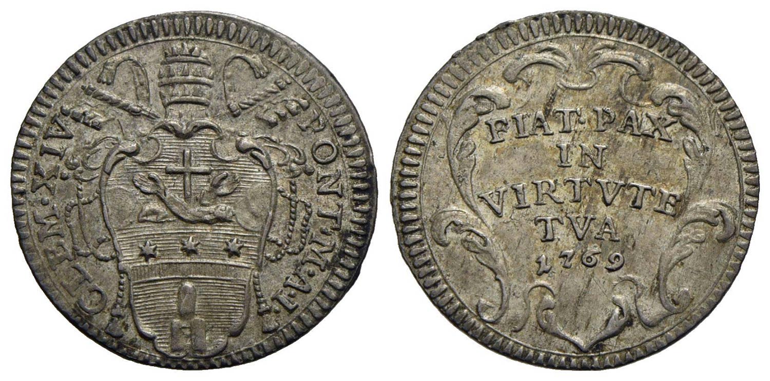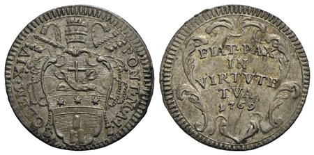 ROMA - Clemente XIV (1769-1774) - Grosso - 1769 A. I - Stemma ovale sagomato - R/ Scritta su quattro