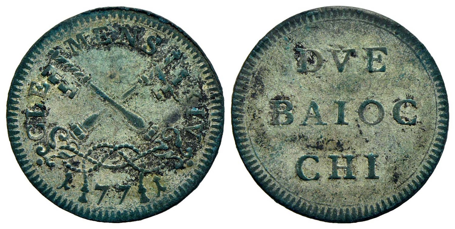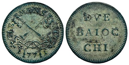 ROMA - Clemente XIV (1769-1774) - Muraiola da 2 baiocchi - 1771 - Chiavi decussate - R/ Scritta - (MI g. 1,74) R CNI 15; Munt. 11
