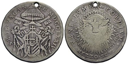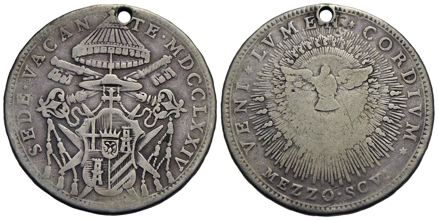 ROMA - Sede Vacante (1774-1775) - Mezzo scudo - 1774 - Stemma a targa sagomata - R/ Colomba radiante - (AG g. 12,64) CNI 2; Munt. 2 Forata