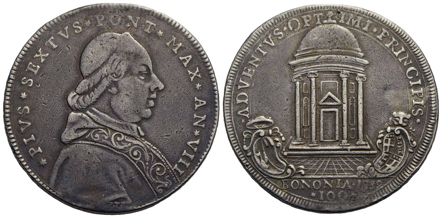 BOLOGNA - Pio VI (1775-1799) - Scudo romano - 1782 A. VIII - (AG g. 26,18) R CNI 144; Munt. 197 Appi