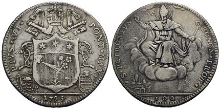 BOLOGNA - Pio VI (1775-1799) - Scudo romano - 1795 - (AG g. 26,26) RR CNI 304; Munt. 201