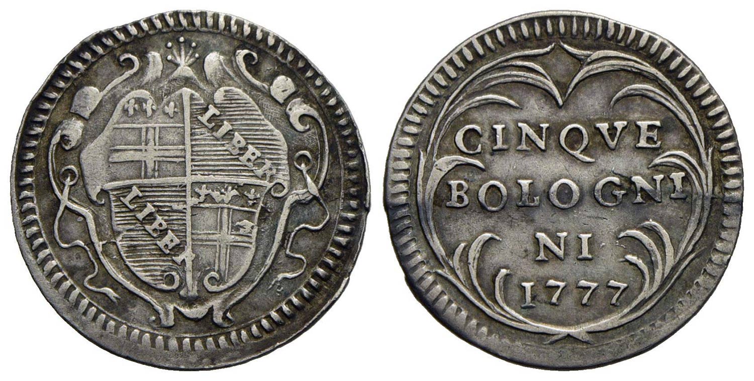 BOLOGNA - Pio VI (1775-1799) - Carlino - 1777 - (AG g. 1,45) R CNI 17; Munt. 228