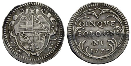 BOLOGNA - Pio VI (1775-1799) - Carlino - 1777 - (AG g. 1,45) R CNI 17; Munt. 228<br>BB<br><br>Con ca