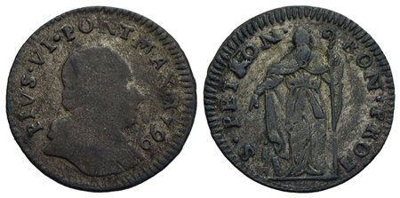 BOLOGNA - Pio VI (1775-1799) - Muraiola da 2 bolognini - 1796 - (MI g. 1,79) R CNI 330; Munt. 247m<b