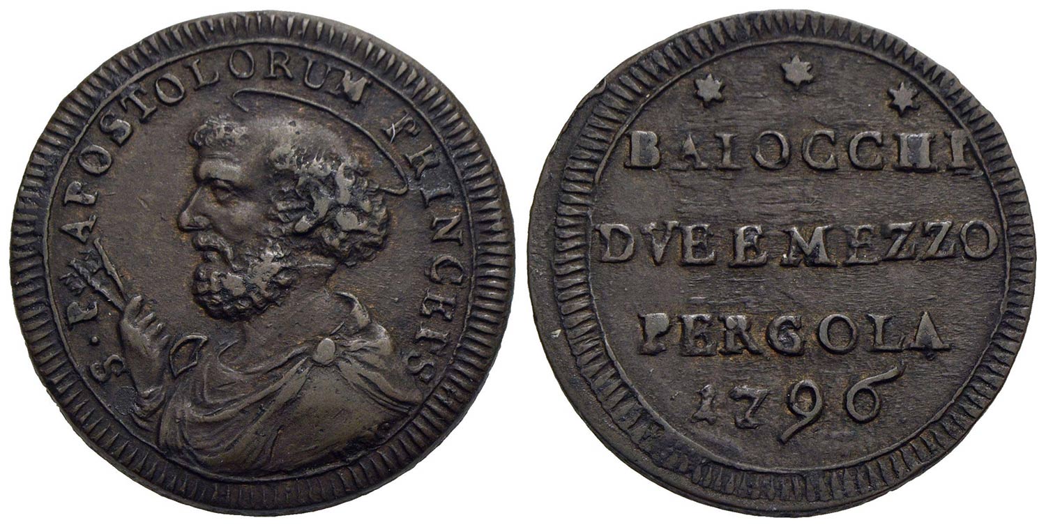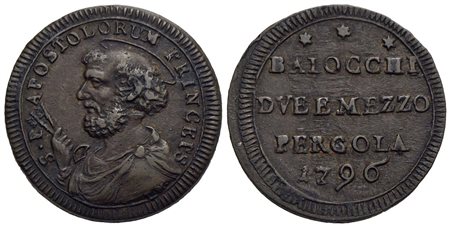 PERGOLA - Pio VI (1775-1799) - Sampietrino - 1796 - (CU g. 15,89) RR CNI 1; Munt. 382<br>SPL<br><br>