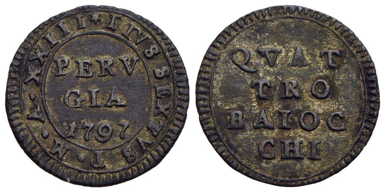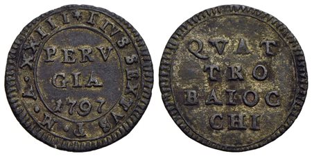 PERUGIA - Pio VI (1775-1799) - Muraiola da 4 baiocchi - 1797 - (MI g. 1,98) R CNI 22; Munt. 387<br>q