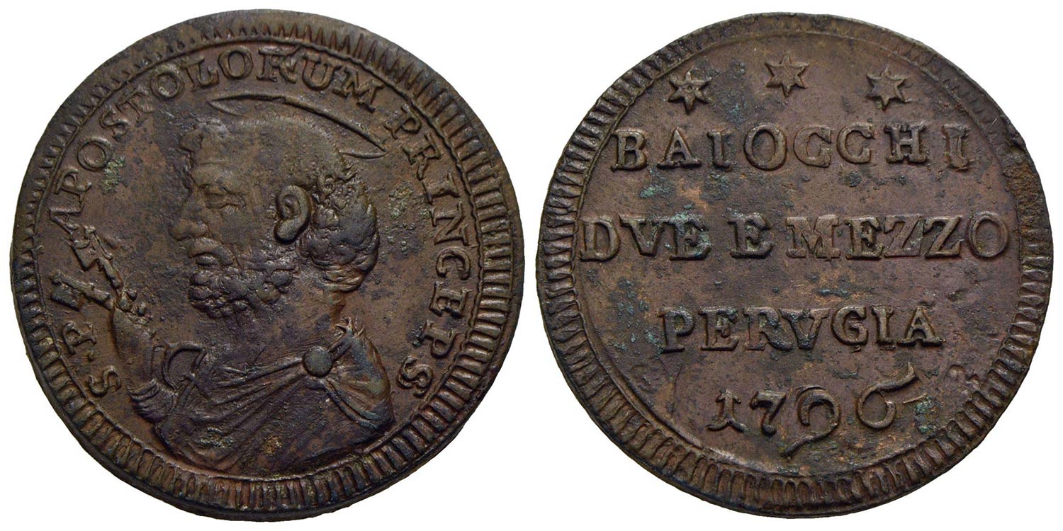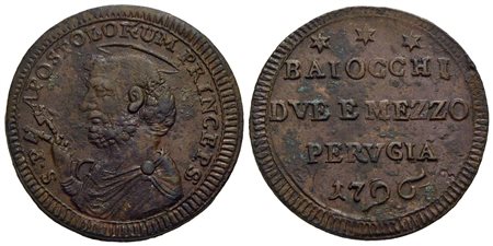PERUGIA - Pio VI (1775-1799) - Sampietrino - 1796 - (CU g. 16,61) CNI 10; Munt. 393<br>BB+<br><br>Co