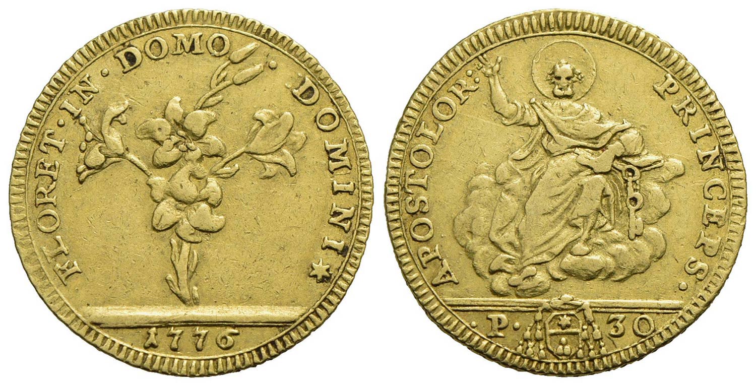 ROMA - Pio VI (1775-1799) - Doppia - 1776 - (AU g. 5,44) CNI 17; Munt. 2<br>BB-SPL<br><br>Con cartel