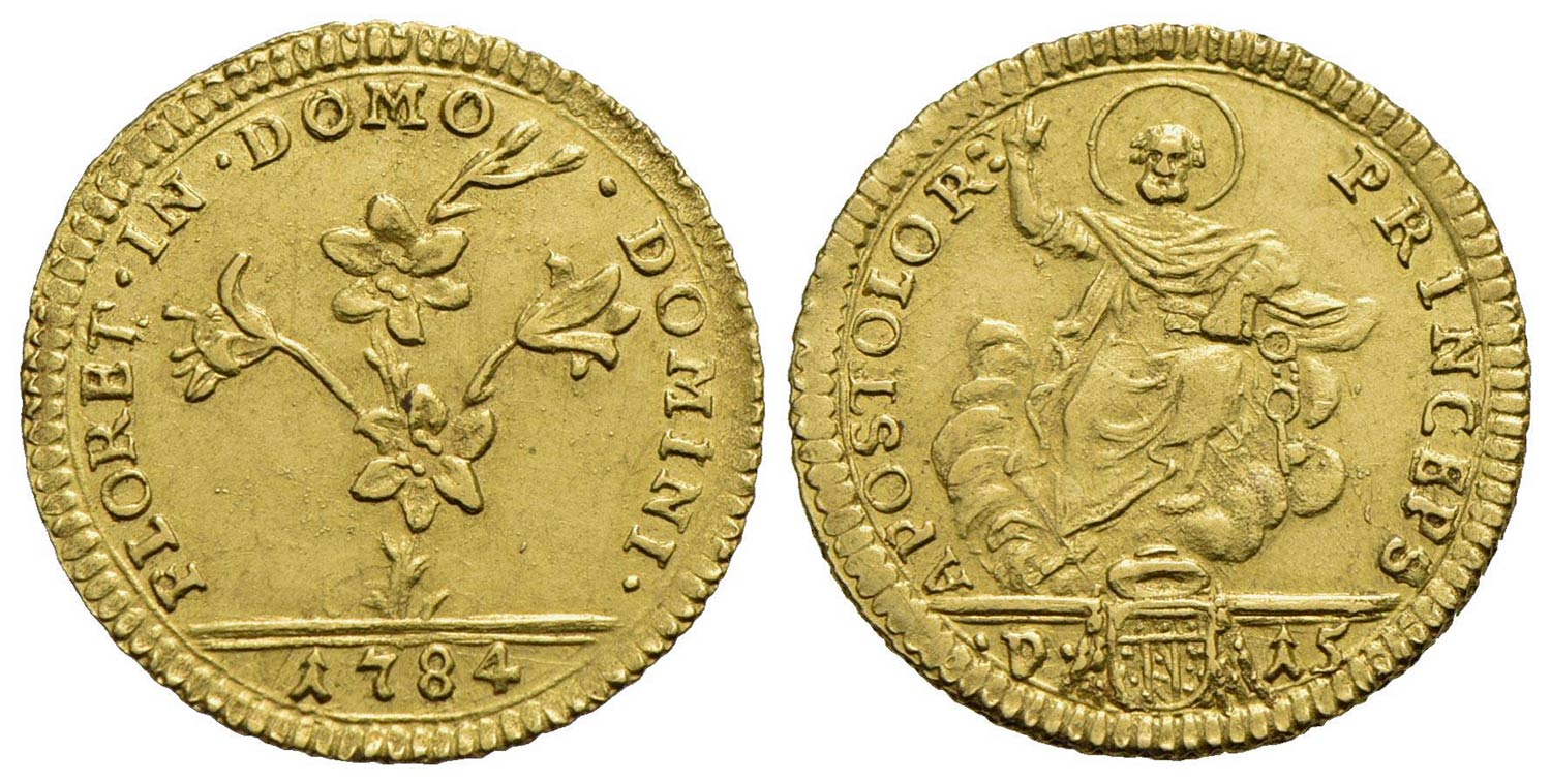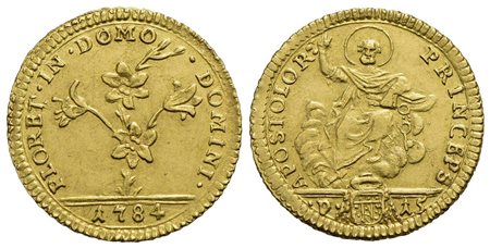 ROMA - Pio VI (1775-1799) - Mezza doppia - 1784 - (AU g. 2,72) R CNI 137; Munt. 14c<br>SPL-FDC<br><b