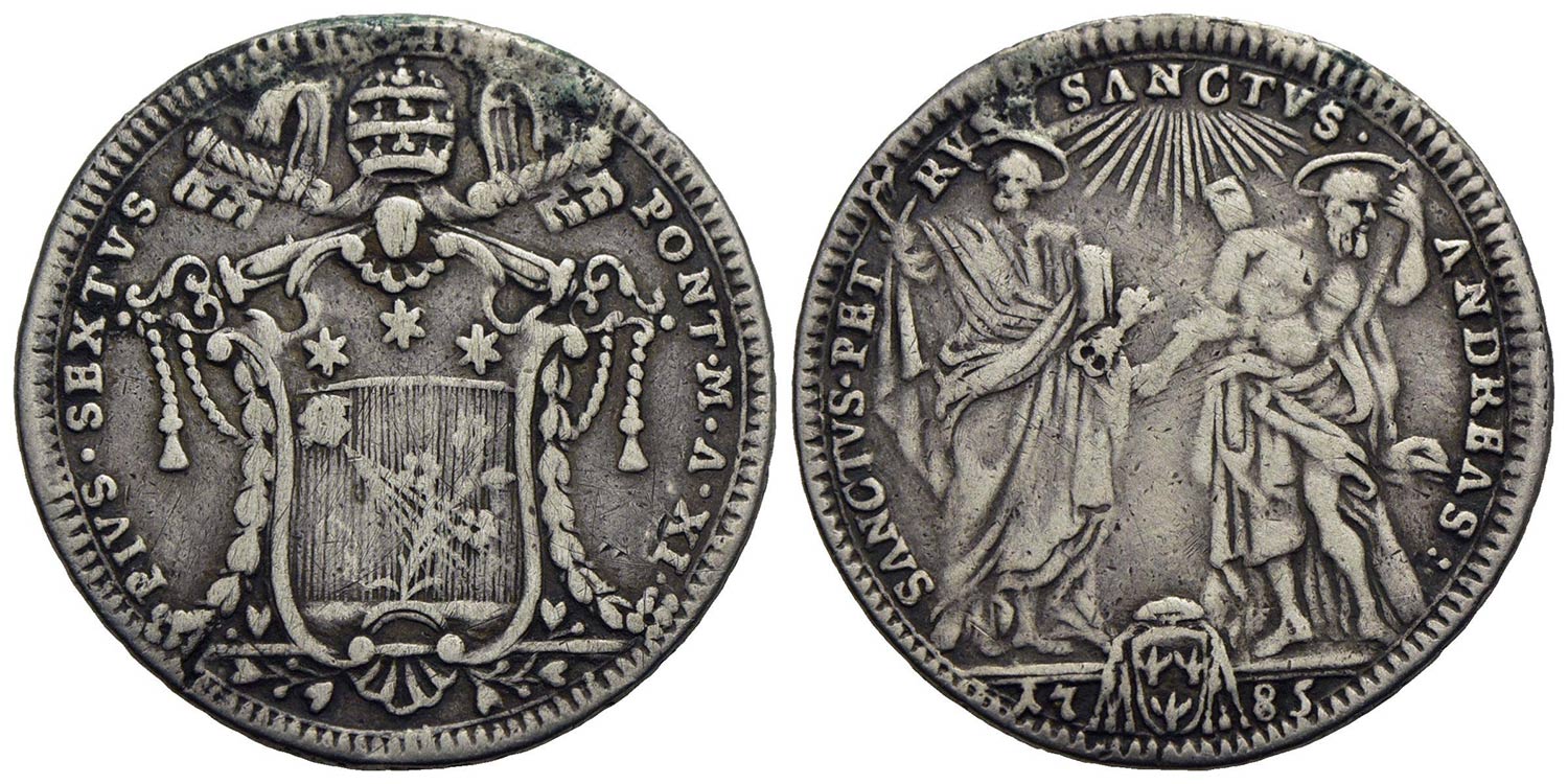 ROMA - Pio VI (1775-1799) - Testone - 1785 A. XI - (AG g. 7,69) CNI 158; Munt. 29 Montatura asportata