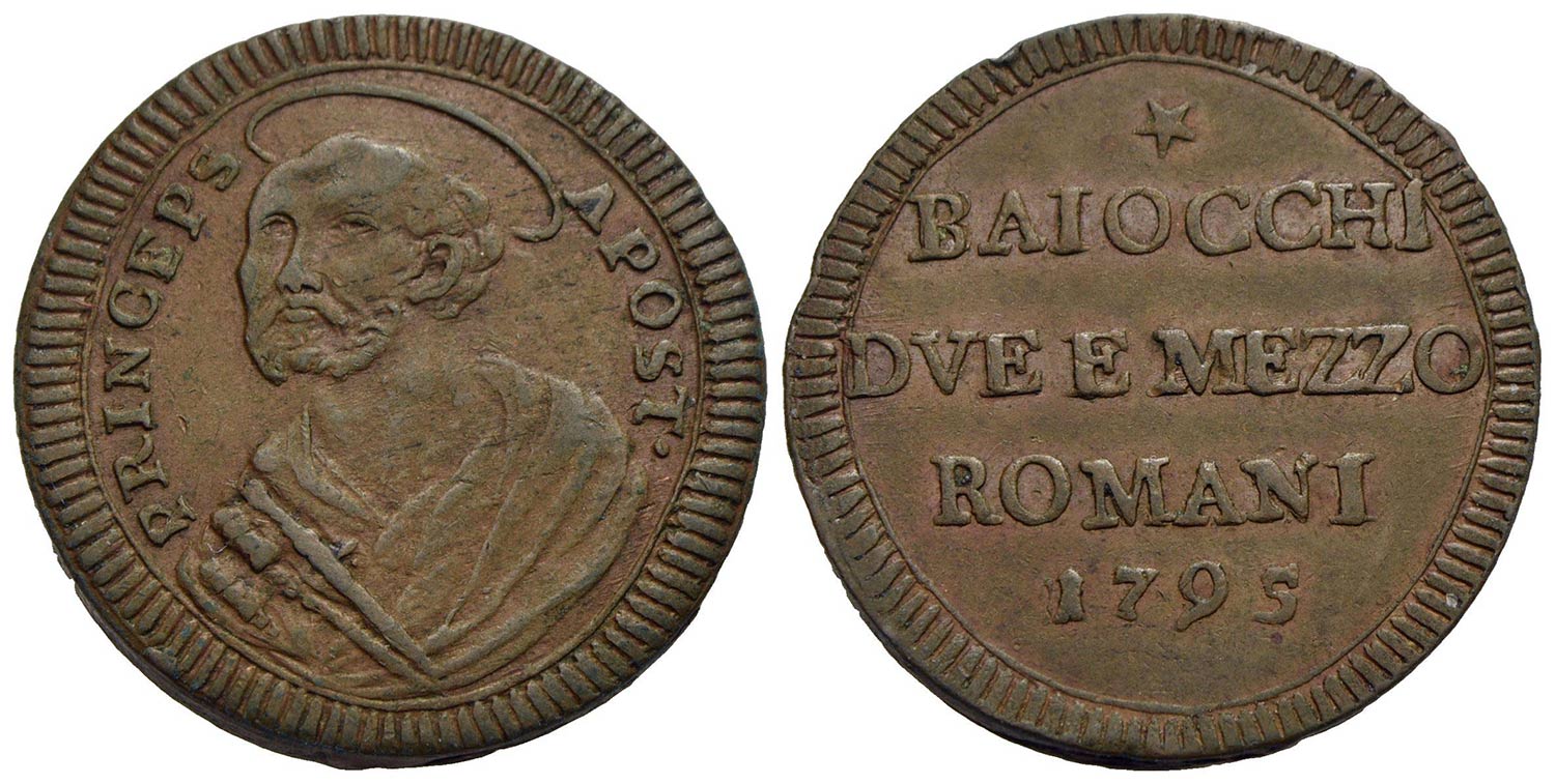Lotto 719 | ROMA - Pio VI (1775-1799) - Sampietrino - 1795 - (CU g. 17,64) R CNI 278; Munt. 97<br>SPL<br><br>Con