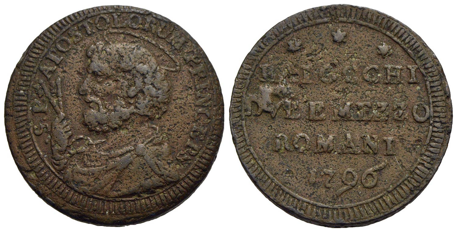ROMA - Pio VI (1775-1799) - Sampietrino - 1796 - (CU g. 14,72) CNI 308; Munt. 100<br>BB+<br><br>Con