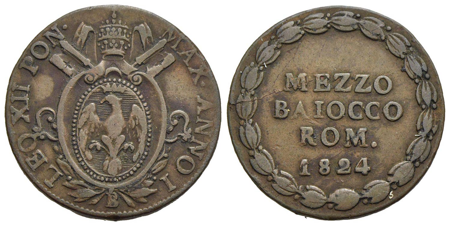BOLOGNA - Leone XII (1823-1829) - Mezzo baiocco - 1824 A. I - (CU g. 5,86) Pag. 119; Mont. 11<br>bel