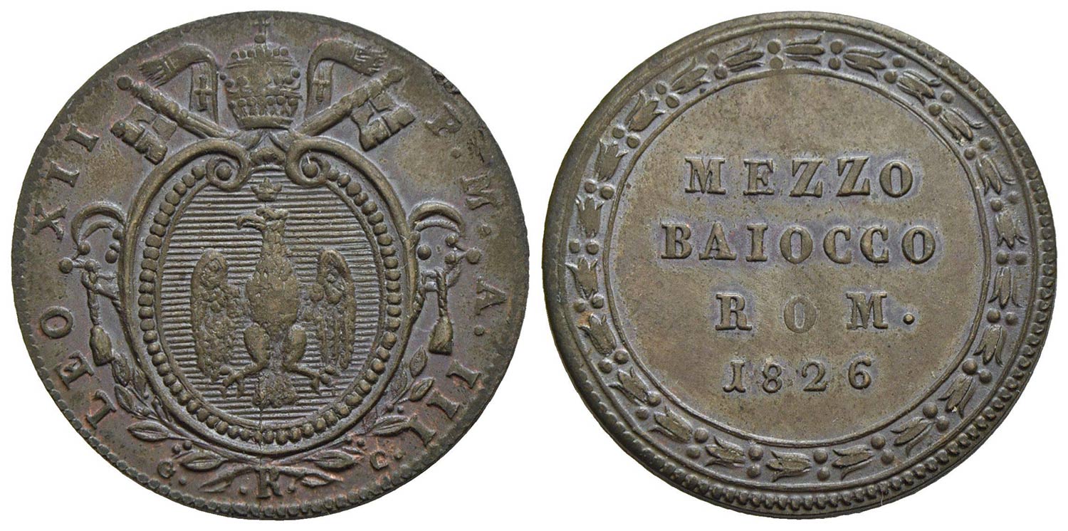 ROMA - Leone XII (1823-1829) - Mezzo baiocco - 1826 A. III - (CU g. 6,03) Pag. 135a; Mont. 14<br>FDC