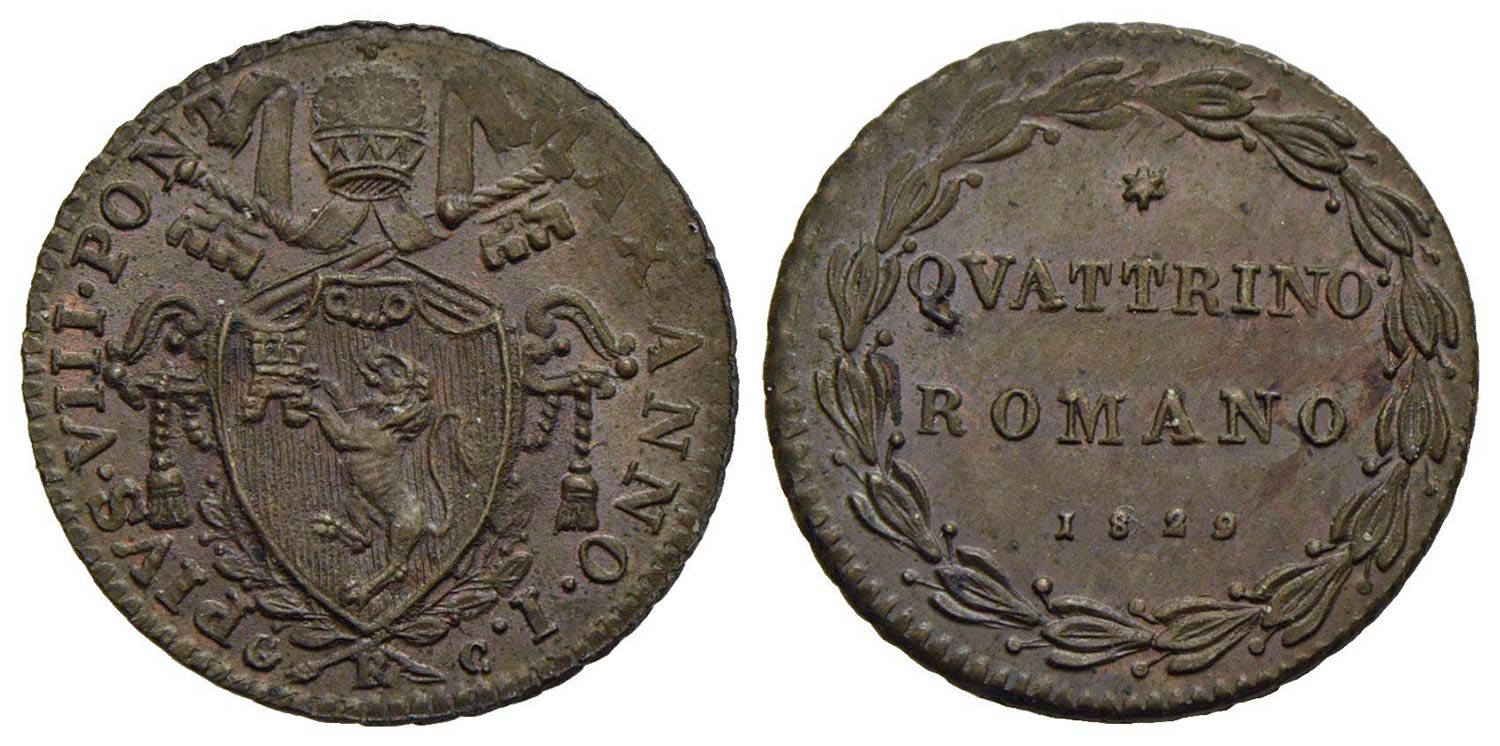 Lotto 758 | ROMA - Pio VIII (1829-1830) - Quattrino - 1829 - (CU g. 2,5) Pag. 149; Mont. 13<br>qFDC<br><br>Con c