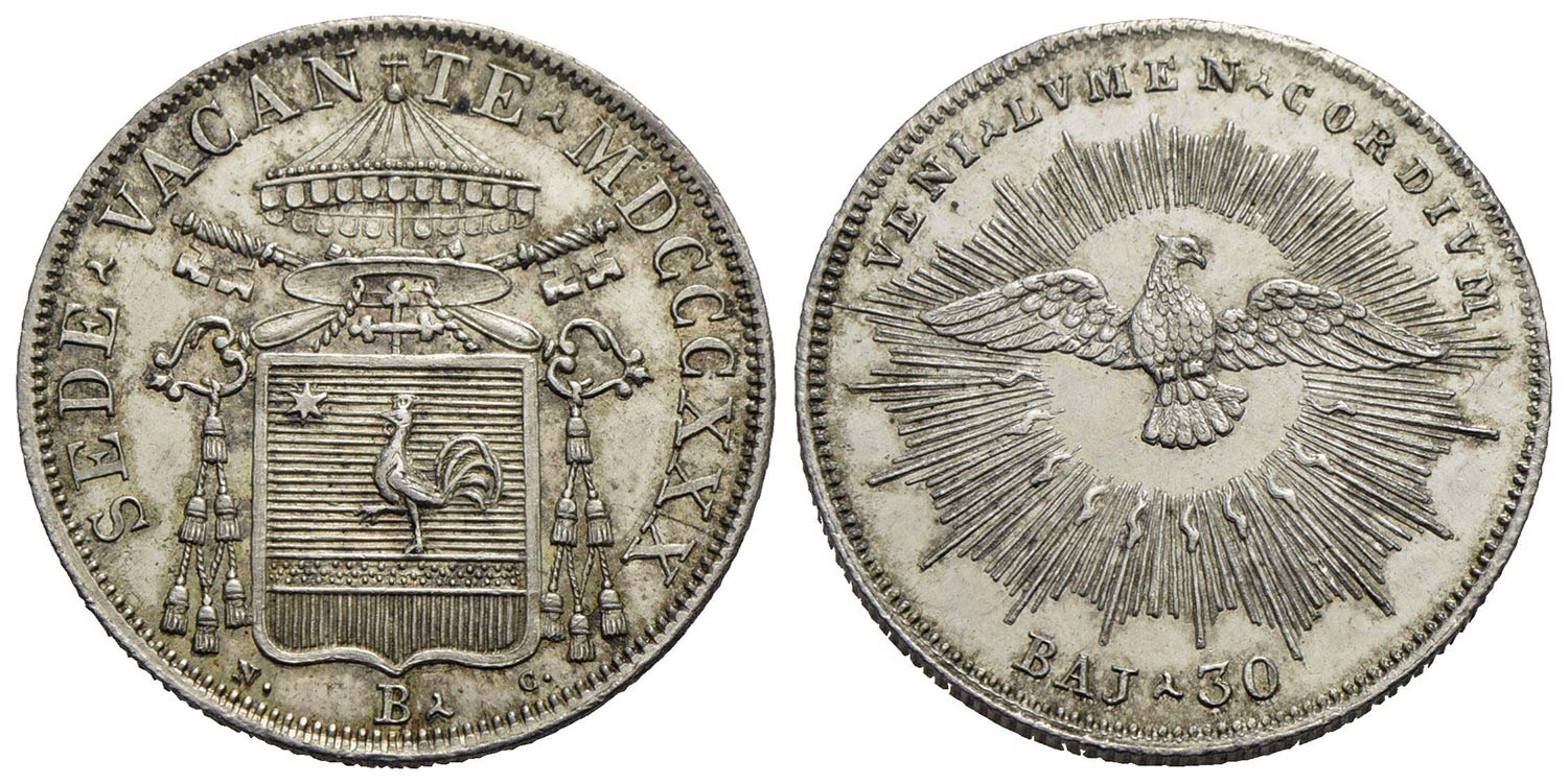 BOLOGNA - Sede Vacante (1830-1831) - 30 Baiocchi - 1830 - (AG g. 7,97) R Pag. 153; Mont. 18 Delicata patina su fondi lucenti