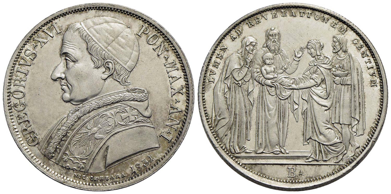 BOLOGNA - Gregorio XVI (1831-1846) - Scudo - 1831 A. I - (AG g. 26,53) Pag. 153; Mont. 70<br>FDC<br>