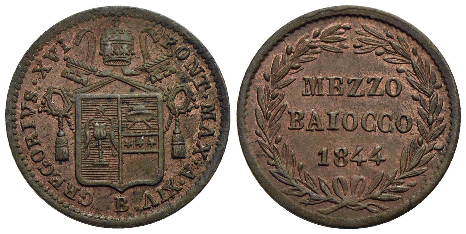 BOLOGNA - Gregorio XVI (1831-1846) - Mezzo baiocco - 1844 A. XIV - (CU g. 5,06) Pag. 227a; Mont. 250