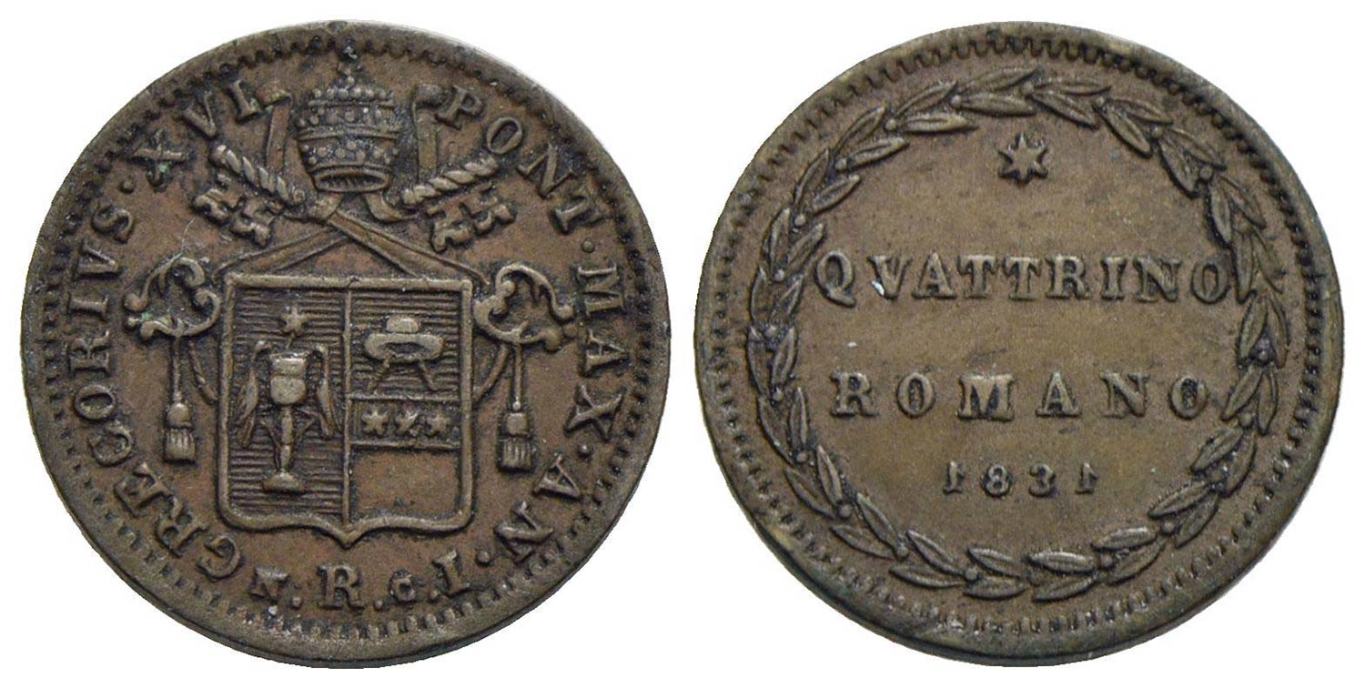 Lotto 776 | ROMA - Gregorio XVI (1831-1846) - Quattrino - 1831 A. I - (CU g. 2,58) R Pag. 291a; Mont. 224<br>qSP
