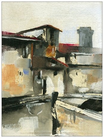ENZO SPAGNOLI (Campiglia 1922 – Livorno 1985) Vecchia Livorno Olio su cartone telato 24 x 18. Titolo e firma sul verso.